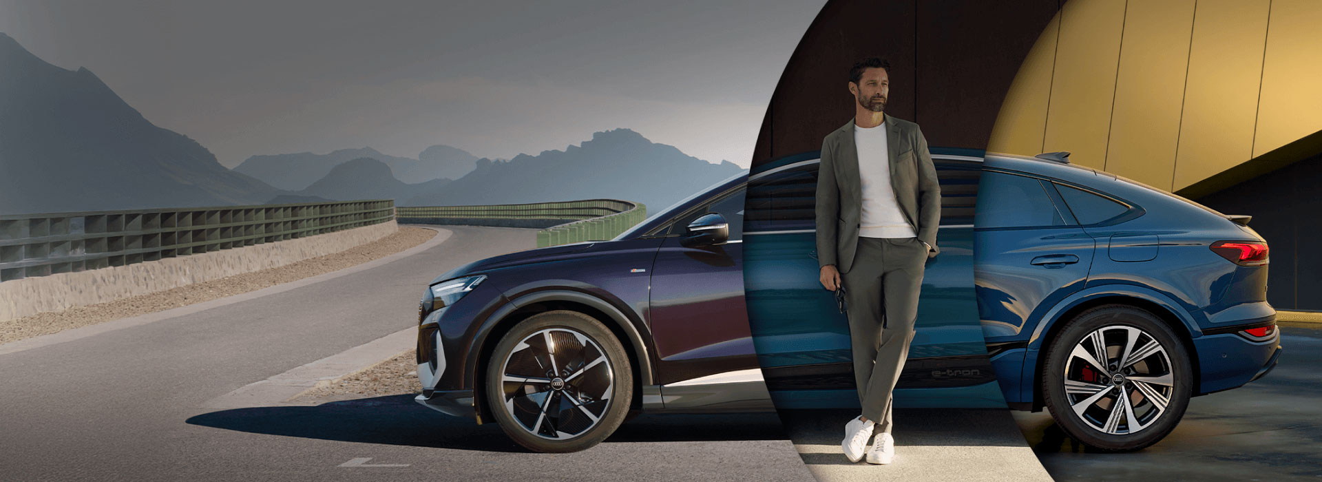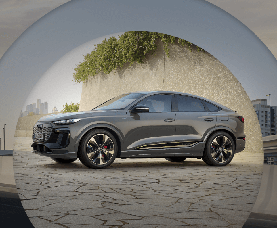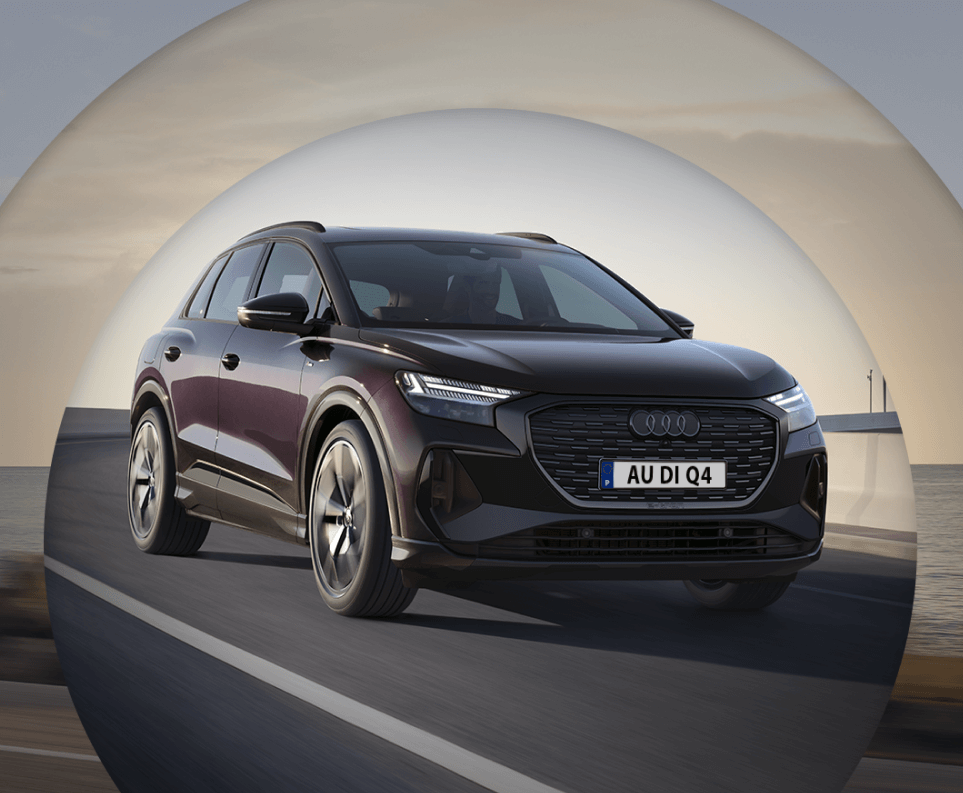 *Exemplo para Audi Q4 e-tron 45 82kWh 286cv. Contrato para 24 meses. PVP 59.643€. Primeira renda de 29.821€, uma renda de 14.889€ e valor residual de 14.911€ para um contrato para empresas ou particulares. Valor Financiado de 59.643 € em ALD Automóvel. TAN 0,00% e TAEG 1,37%. MTIC de 60.243€. Acresce 600.00€ de comissão de abertura. Campanha válida até 30/09/2025. Imagem não contratual. A Caetano Drive, Sport e Urban, S.A. atua como Intermediário de Crédito a título acessório, sob o nº 909, em regime de não exclusividade.