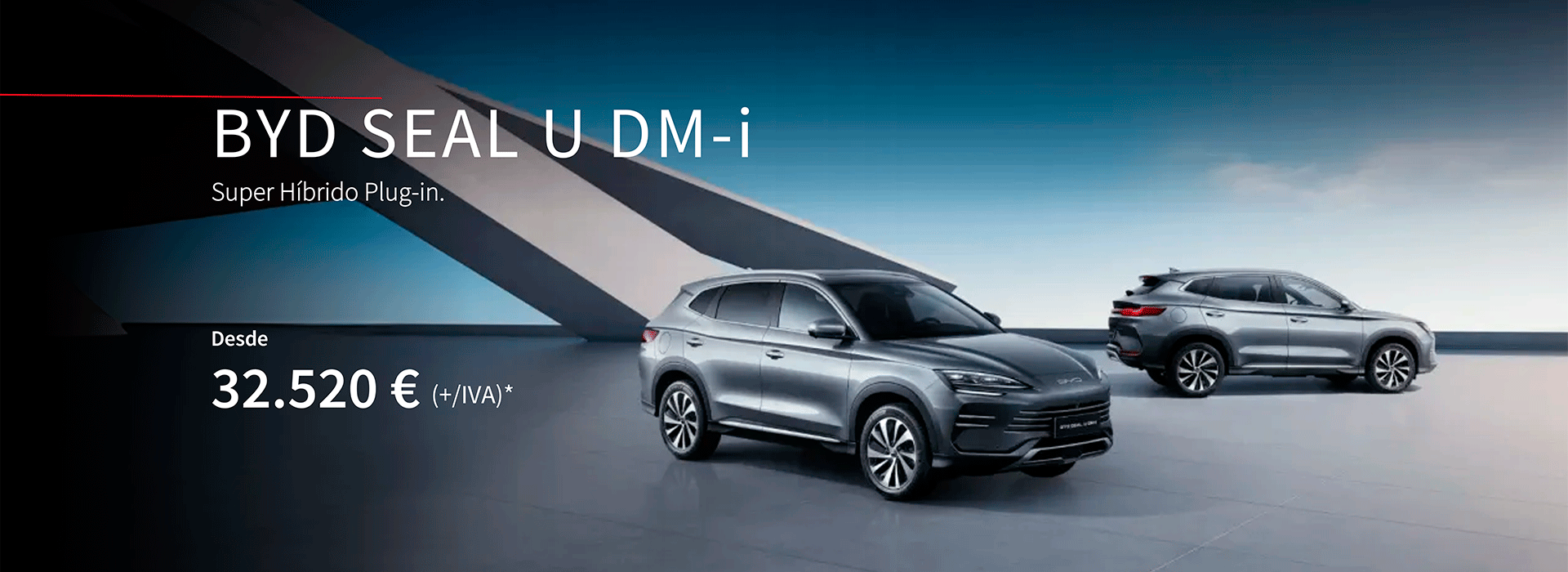 *PVP referente ao modelo BYD SEAL U DM-i versão Boost, em vigor até 31/08/2025 nos concessionários BYD aderentes e limitado ao stock existente. Valor não inclui despesas de legalização, transporte e custos adicionais de opção de pintura. Acresce IVA à taxa legal em vigor. Imagem não contratual. WLTP: Consumo de energia em ciclo combinado (kWh/100 km): 17,9 – 23,5; Consumo de combustível em ciclo combinado (l/100 km): 5,6 – 7,4; Consumo ponderado em ciclo combinado (l/100 km): 0,4 – 1,2; Autonomia elétrica em ciclo combinado (km): 70 – 125; Autonomia total (elétrico + combustível): 870 – 1125 km; Emissões de CO2 em ciclo combinado (g/km): 9 – 26.