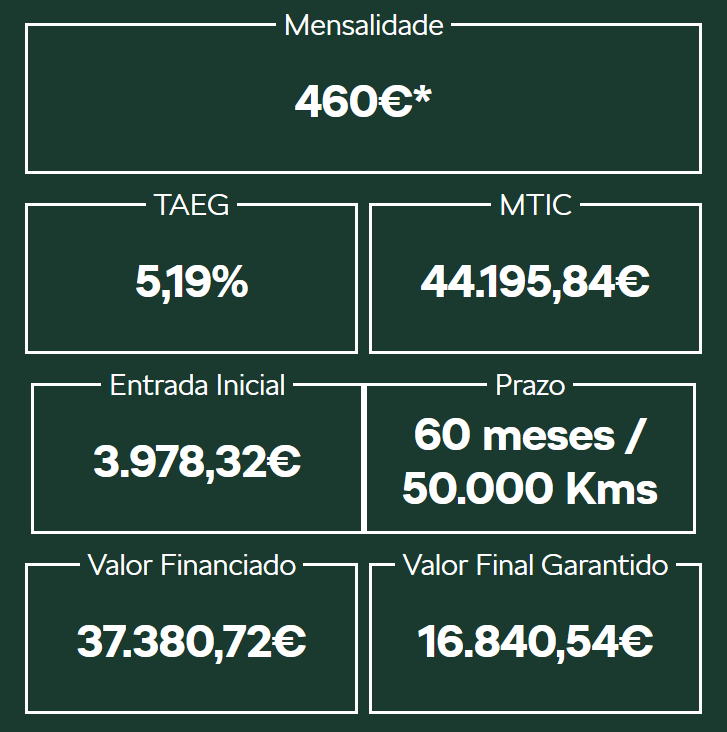 *Exemplo para Skoda Enyaq 60. Prestação Mensal de 457,76€ com manutenção preventiva incluída no valor da prestação de 14,16€ mês. Contrato para 60 meses e 50000 Kms. PVP 41359,04€. Entrada Inicial de 3978,32€. Valor Financiado de 37380,72€ e Valor Final Garantido 16840,54€. MTIC de 44195,84€. TAN 3,95% e TAEG 5,19%. Acresce 525,00€ de comissão de abertura em Crédito Automóvel para viaturas novas com reserva de propriedade. Campanha válida até 30/09/2025. Valor Final Garantido – última prestação do contrato que pode ser liquidada contra a entrega do veículo, desde que observadas as condições indicadas em www.vwfs.pt. Imagem não contratual. Financiado por Skoda Financial Services, uma marca Volkswagen Bank GmbH, Sucursal em Portugal registado(a) no Banco de Portugal sob n.º 264. Mais informações em https://www.vwfs.pt/. Recomenda-se a leitura prévia das condições contratuais.